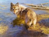 Beyond academic training and emotional involvement, art requires another element for which there is no substitute: experience. Each year, Bonnie makes two major trips, and countless smaller ones, to observe and learn about the wildlife she loves. In 1980, one such voyage took her to Alaska, where she lived in the wilderness for six months. She recounts, “To get into a natural environment and see the animals on their own terms is as important as knowing the animals themselves. For instance, gray wolves on the Tundra with the wind and other forces of nature at their most extreme-that’s what makes them what they are. To stand not far from a grizzly which is so overpowering, so beautiful and so large…to watch itself pull up a small tree with a swipe of its’ paw and just a few minutes later see it delicately picking blueberries. Alaska changed me. It gave me the biggest incentive to paint and increased any interest in predators: the cats, bears, coyotes, wolves, and foxes. They exist on so many levels: their moods show in their eyes and we can learn so much from them.”