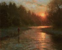 He also enjoys 'Plein Air' painting and strives to work outdoors as often as he can. "I became a better artist when I began painting from life. It forced me to really observe and train my eyes to filter out the unnecessary stuff and focus on the major elements."  He loves to strap on his hiking boots, grab his portable easel and wander off in search of a moody scene to capture on canvas.